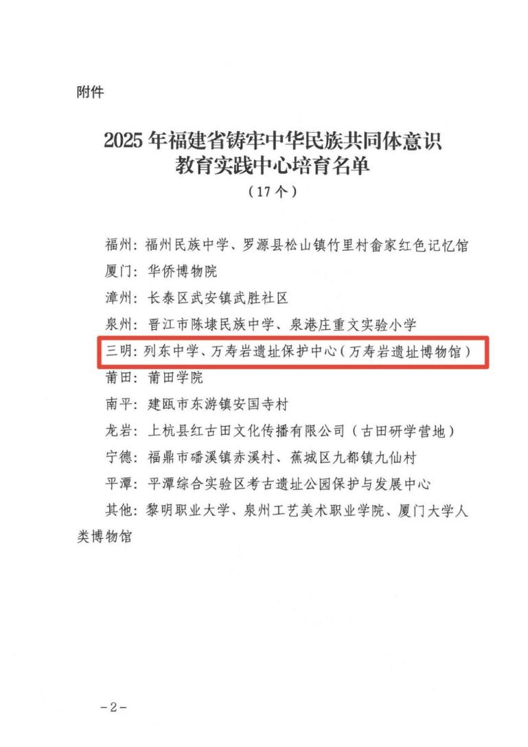 近日,福建省民族與宗教事務(wù)廳公示2025年福建省鑄牢中華民族共同體意識教育實(shí)踐中心培育名單,萬壽巖遺址保護(hù)中心(萬壽巖遺址博物館)憑借獨(dú)特的文化價(jià)值與扎實(shí)的教育實(shí)踐成功入選。