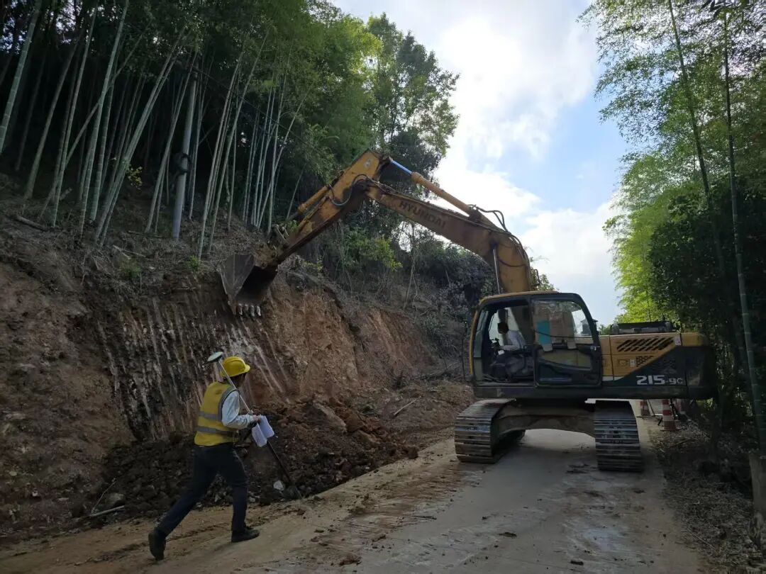 10月29日,三元區(qū)洋溪鎮(zhèn)“半孝線”道路拓寬硬化工程現(xiàn)場,3臺挖掘機正揮舞著“鐵臂”在道路一側(cè)開挖山體,拓寬路面,壓路機則緊隨其后來回碾壓,將新修整的路基夯實平整,一派熱火朝天的建設(shè)景象。