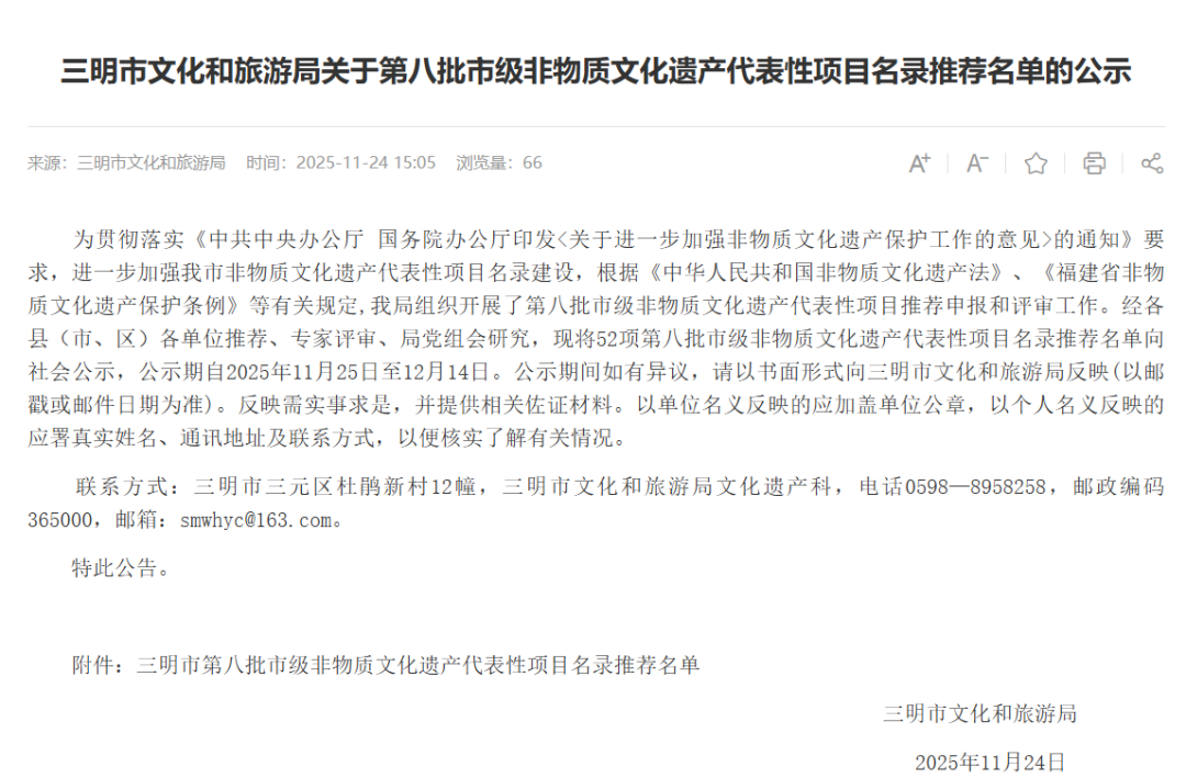 做大三產(chǎn)、做強(qiáng)三產(chǎn) | 三元區(qū)3項(xiàng)非遺代表性項(xiàng)目入選三明市第八批非物質(zhì)文化遺產(chǎn)代表性項(xiàng)目名錄推薦名單