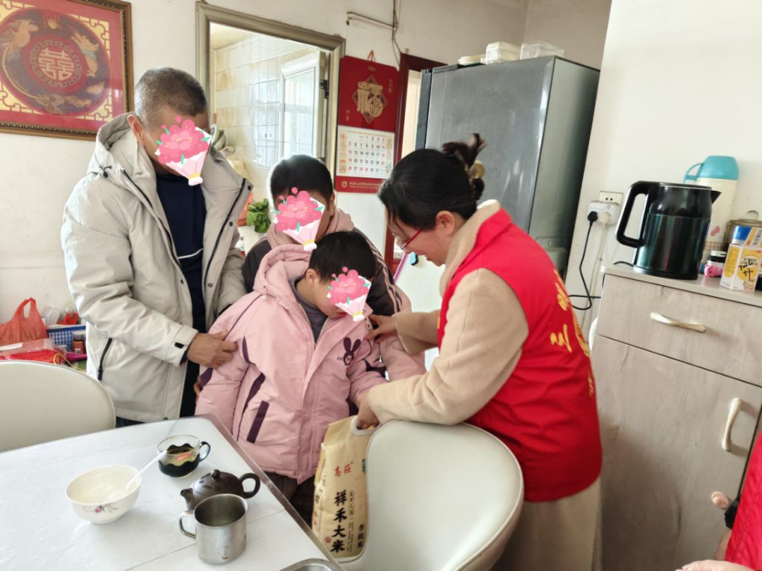 列東街道積極聯動社區、民政服務站等社會力量,組建由黨員干部、網格員和志愿者組成的“暖心小分隊”,緊急提供醫療支持,幫助其轉診住院,解決燃眉之急;細致解讀民政政策,為其配偶申請特困人員補助,緩解經濟壓力;同時挖掘社區內生力量,發動熱心居民進行“鄰里互助”,組織理發師、大學生等志愿者定期上門剪發、拿藥、照料起居。點滴小事匯聚成涓涓細流,老人深受感動,生活質量穩步提升,心情愈發開朗,心節也逐漸打開。 在崇桂社區,困難兒童魏某患有嚴重的唐氏綜合征,被生父母遺棄。養父母均為殘疾人員,收入拮據,孩子每年的治療費用高達數十萬元,家庭生活陷入困境。