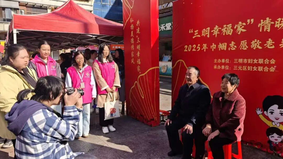 現場“三明幸福家”公益體驗區人氣爆棚,十余個服務攤位各展所長。區司法局、公安分局開展法律與反詐科普,守護市民“錢袋子”;消防支隊、禁毒辦通過案例講解與實操教學,強化居民安全防范能力;華廈眼科、區殘聯提供免費眼檢、量血壓、理發等便民服務;市、區婦聯及彩虹橋社工普及垃圾分類知識;區民宗、區僑聯提供政策法規宣傳。“情暖金婚”打卡墻前,一對對金婚夫婦合影留言,用相濡以沫的愛情為“幸福家”注解,盡顯溫馨。